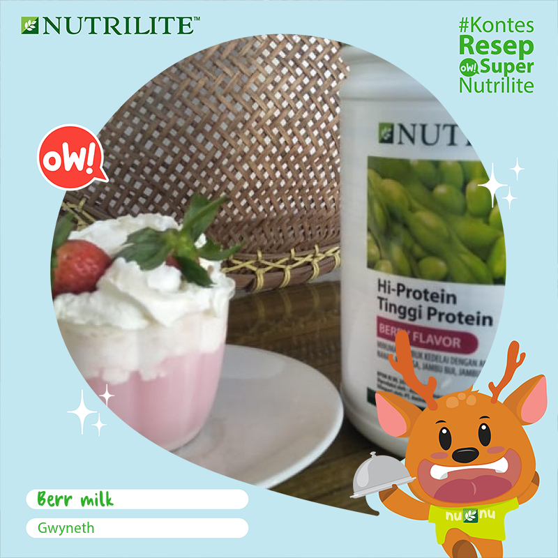 1. Masukkan 1 sendok bubuk hi protein tinggi protein(berry flavor) ke dalam gelas